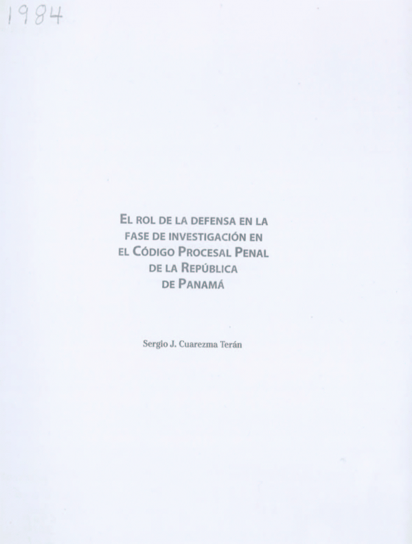 El Rol de la Defensa en la Fase de Investigación en el Código Procesal Penal de la República de Panamá/ Cuarezma Terán, Sergio J.