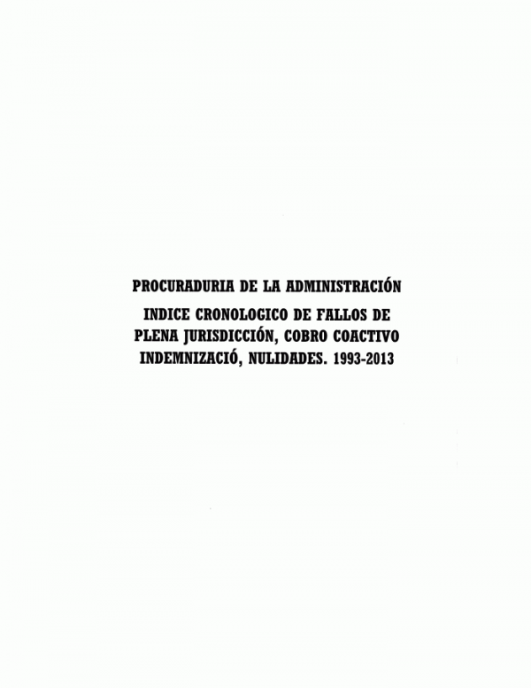 Índice Cronológico de los Fallos de Plena Jurisdicción, Cobro Coactivo, Indemnización, Nulidades y Fallos Varios 1993-2013/ Procuraduría de la Administración.