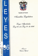 Leyes Aprobadas: Ley 63 a la Ley 73 de 1996. Edición Oficial/ Asamblea Legislativa de Panamá