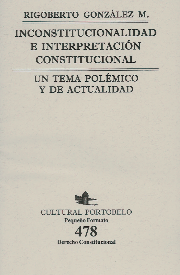 Inconstitucionalidad e Interpretación Constitucional: Rigoberto González Montenegro Un Tema Polémico y de Actualidad por Series Ejemplar 1789, Ubicación Derecho Constitucional