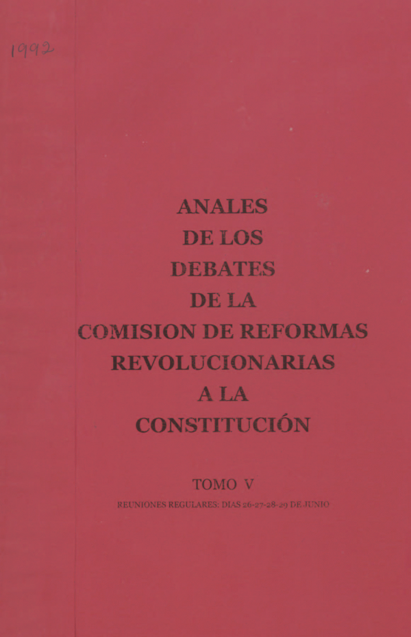 Anales de los Debates de la Comisíon de Reformas Revolucionarias a la Constitución/ Series Ejemplar No. 1992, ubicación referencia