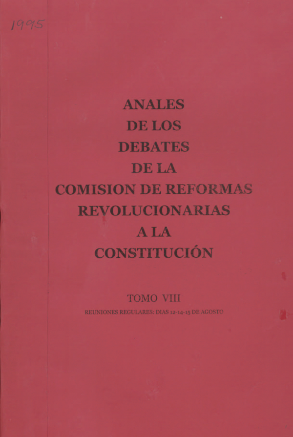 Anales de los Debates de la Comisíon de Reformas Revolucionarias a la Constitución/ Series Ejemplar No. 1995, ubicación referencia