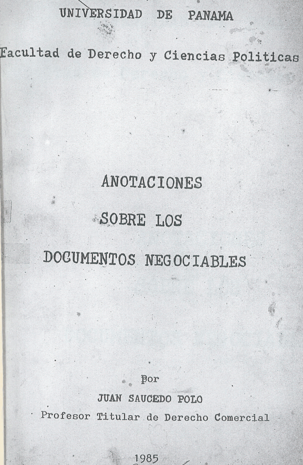 Anotaciones Sobre los Documentos Negociables/ Universidad de Panamá por Series Ejemplar No. 1721, Ubicación Derecho Comercial