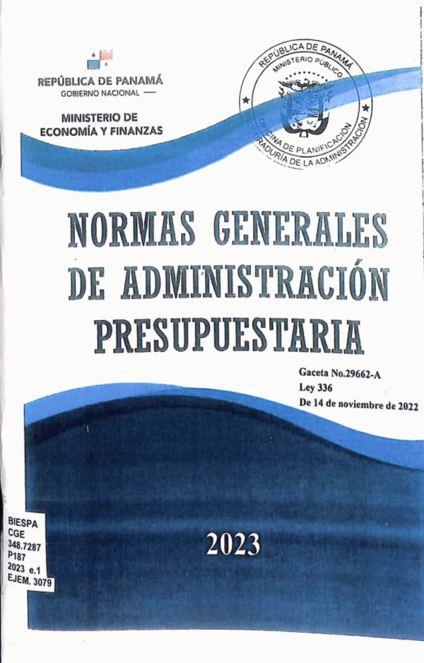 Normas Generales de Administración Presupuestaria: Gaceta Oficial No. 29,662A, Ley 336 de 2023./ Ministerio de Economía y Finanzas. por Series Ejemplar 3079, Ubicación Referencia, Leyes
