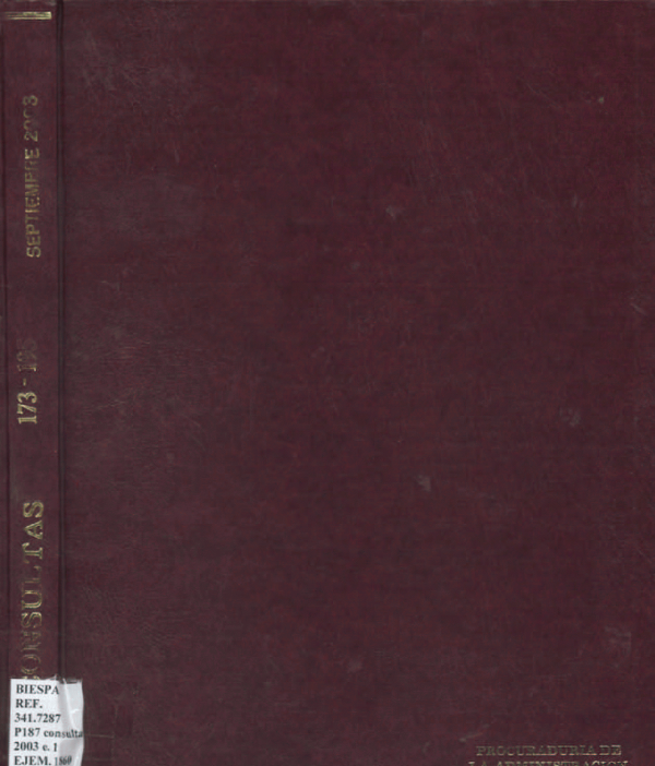 República de Panamá. Procuraduria de la Administración: Procuraduria de la Administración. Consultas C-173-03 A C-195-03/ por Series Ejemplar 1860, Ubicación Referencia Consultas