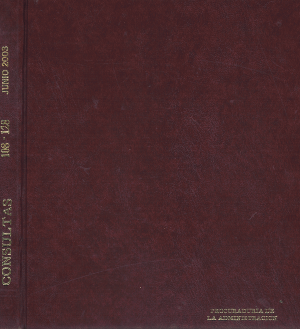 República de Panamá. Procuraduria de la Administración: Procuraduria de la Administración. Consultas C-108-03 A C-128-03/ por Series Ejemplar 1857, Ubicación Referencia Consultas