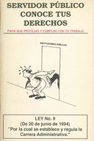 Servidor Público Conoce Tús Derechos. Para que Protejas y Cumplas con tú Trabajo Ley No. 9 De 20 de junio "1994 "Por la Cual se establece y se regula la Carrera Administrativa/ Alonso Londoño Alvaresz, por Series Ejemplar 1519, Ubicación Derecho Administrativo Laboral