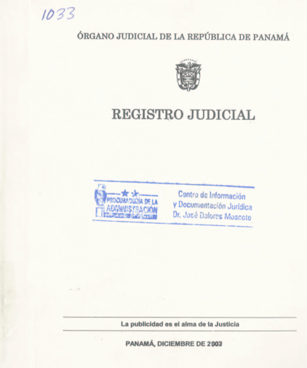Registro Judicial/ Organo Judicial por Series ; Ejemplar No.1033