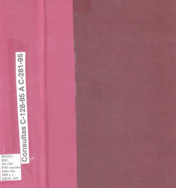 República de Panamá. Procuraduria de la Administración: Procuraduria de la Administración. Consultas C - 128 - 95 A C- 281 - 95/ por Series Ejemplar 1935 Ubicación Referencia, Consultas