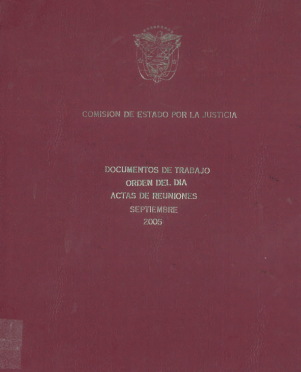 Documento de Trabajo: Comisión de Estado por la Justicia Actas de Reuniones Septiembre 2005 por Series Ejemplar No.2085, Ubicaccion Referencia