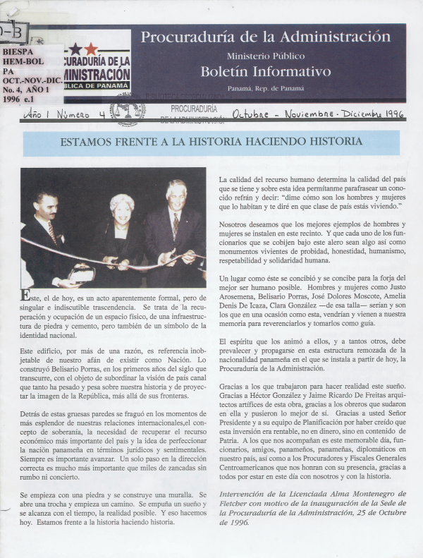 Detalles de publicación: Panamá: Procuraduria de la Administración. 1996