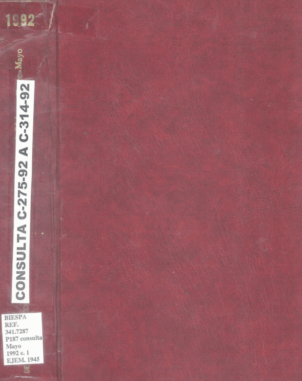 República de Panamá. Procuraduria de la Administración: Procuraduria de la Administración. Consultas C -275- 92, A, C- 314 - 92/ por Series Ejemplar 1945, Ubicación Referencia Consultas