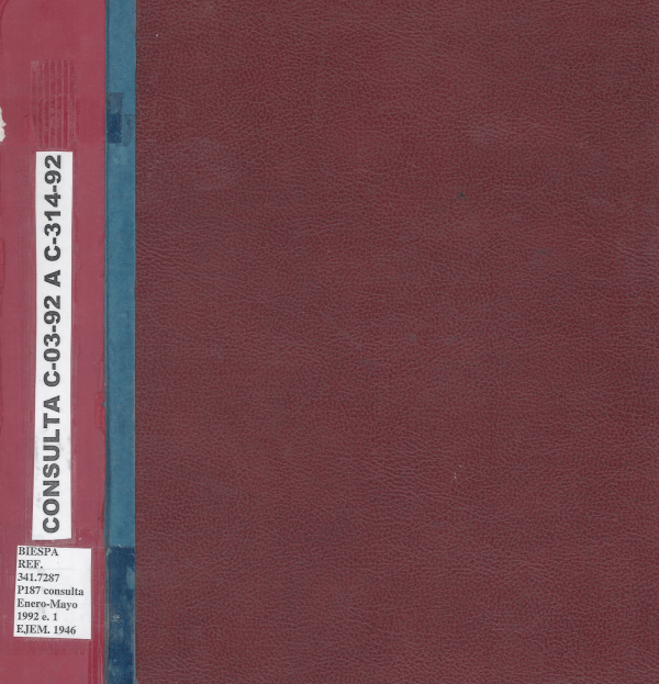República de Panamá. Procuraduria de la Administración: Procuraduria de la Administración. Consultas C -03- 92, A, C- 314 - 92/ por Series Ejemplar 1946, Ubicación Referencia Consultas