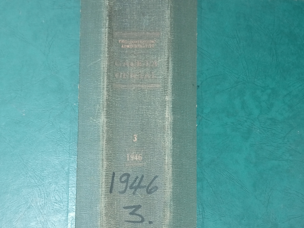Gaceta Oficial, Número 10.036-10.111, 1946/ Panamá Gaceta Oficial, por Series Documentación Histórica, Gacetas ; Ejemplar 3088, Ubicación Referencia.