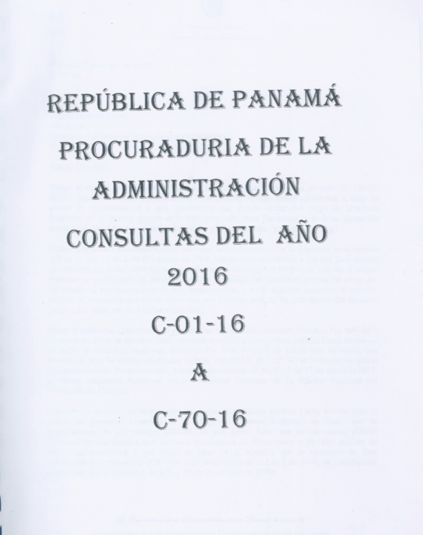 República de Panamá. Procuraduria de la Administración: Procuraduria de la Administración. Consultas, C-01-16, A C-70-16/ por Series Ejemplar 1831, Ubicación Referencia-Consultas