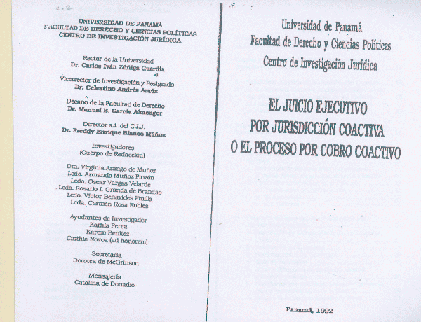 El Juicio Ejecutivo por Jurisdicción Coactiva o el Proceso por Cobro Coactivo/ Universidad de Panamá: Facultad de Derecho y Ciencias Políticas, Centro de Investigación Juridíca por Series Ejemplar No. 2416, Ubicación D. Administrativo