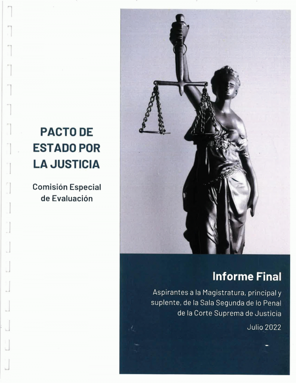Pacto de Estado Por la Justicia : Informe Final: Aspirantes a las Magistraturas Principales y Suplentes, de la Sala Segunda de lo Penal, Corte Suprema de Justicia/ Procuraduria de la Administración por Series Ejemplar No. 2788, Ubicación derecho Administrativo | ;