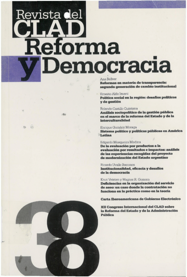 Revista del CLAD: Reforma y Democracia/ Centro Latinoamericano de Administración para el Desarrollo (CLAD) por Series ; No. 38