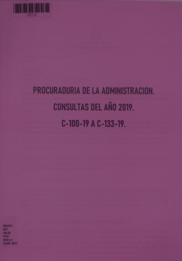 República de Panamá. Procuraduria de la Administración: Consultas, C-100-19 a C-133-19/ por Series Ejemplar 2816, Ubicación Consultas
