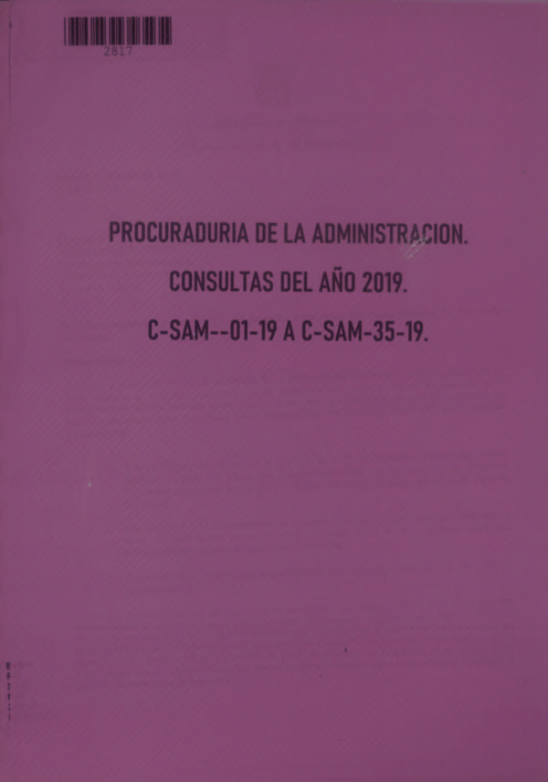 República de Panamá. Procuraduria de la Administración: Consultas, C- SAM-01-19 a C-135-19/ por Series Ejemplar 2817, Ubicación Consultas