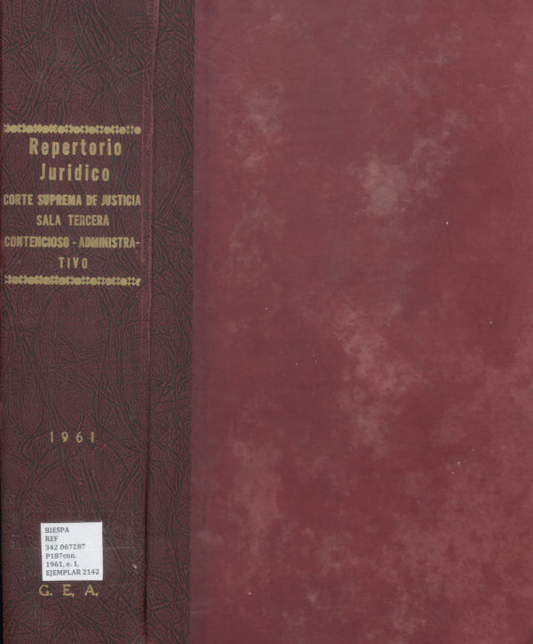 Repertorio Juridico Corte Suprema de Justicia Sala Tercera Contencioso-Administrativo. por Series Ejemplar No. 2142 Ubicación Referencia