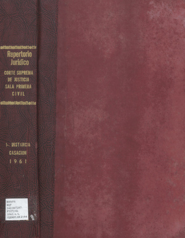Repertorio Juridico Corte Suprema de Justicia, Sala Primera Civil: Primera Instancia Casación/ por Series Ejemplar No. 2144, Ubicación Referencia