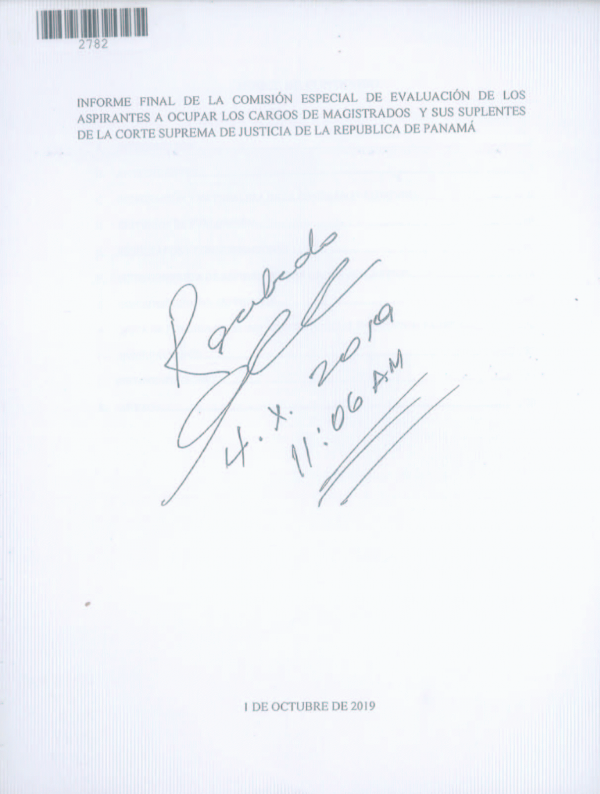 Informe Final de la Comisión Especial de Evaluación de los Aspirantes a Occupar los Cargos de Magistrados y Suplentes de la Corte Suprema de Justicia de la República de Panamá: 1 de Octubre 2019/ Procuraduria de la Administración por Series Ejemplar No. 2782, Ubicación Derecho Administrativo | ;