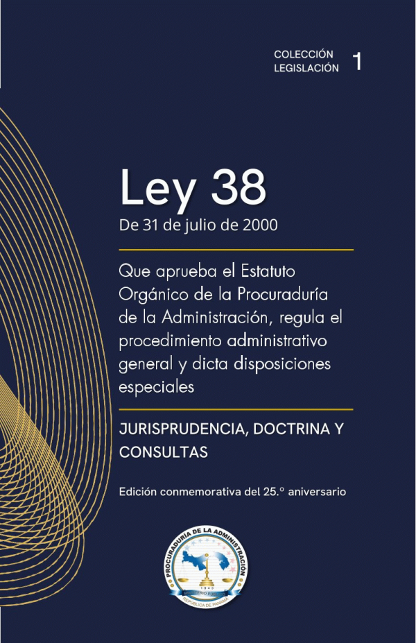 Ley 38 de 31 de Julio 2000" Que Aprueba el Estatuto Orgánico de la Procuraduría de la Administración, Regula el Procedimiento Administrativo General y Dicta Disposiciones Especiales: Procuraduria de la Administración Jurisprudencia Doctrina y Consultas, Edición Conmemorativa del 25° Aniversario/. por Series Ejemplar 3070, Ubicación Derecho Administrativo. Colecciones P.A