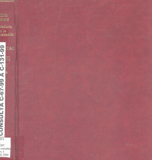 República de Panamá. Procuraduria de la Administración: Procuraduria de la Administración. Consultas C - 67- 99 A C-131- 99 / por Series Ejemplar 1924, Ubicación Referencia Consultas