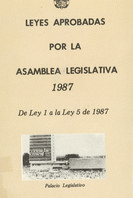Leyes Aprobadas por la Asamblea Legislativa 1987 (De Ley 1 a ley 5 de 1987). Edición Oficial/ Asamblea Legislativa de Panamá por Series Ejemplar 1086, Ubicación Referencia, Leyes