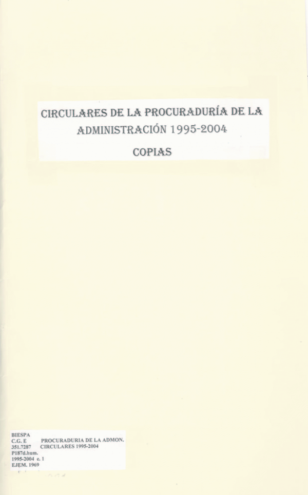 Circulares Jurídicas 1995--2004/ Procuraduría de la Administración por Series Ejemplar 1969, Ubicación Administración Pública